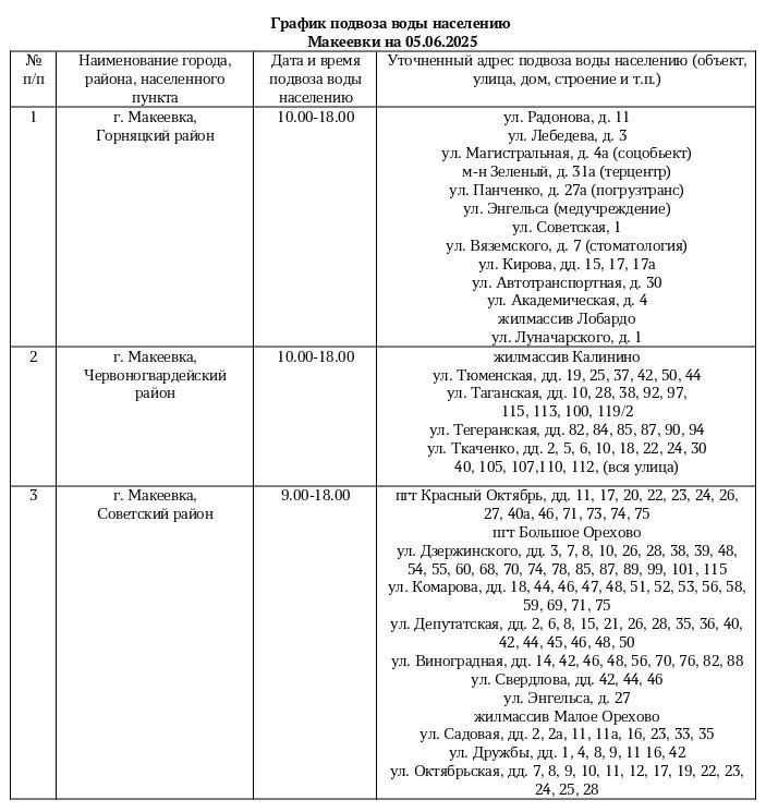 График подвоза воды населению городского округа Макеевка