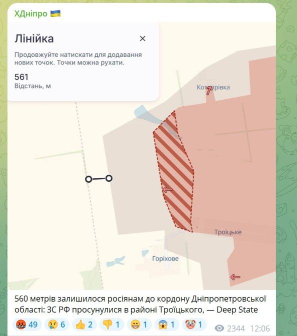 ВС РФ продвинулись в районе Троицкого, и теперь от линии фронта до админкордона осталось 560 метров, отмечают украинские обыватели со ссылкой на милитари-паблики.