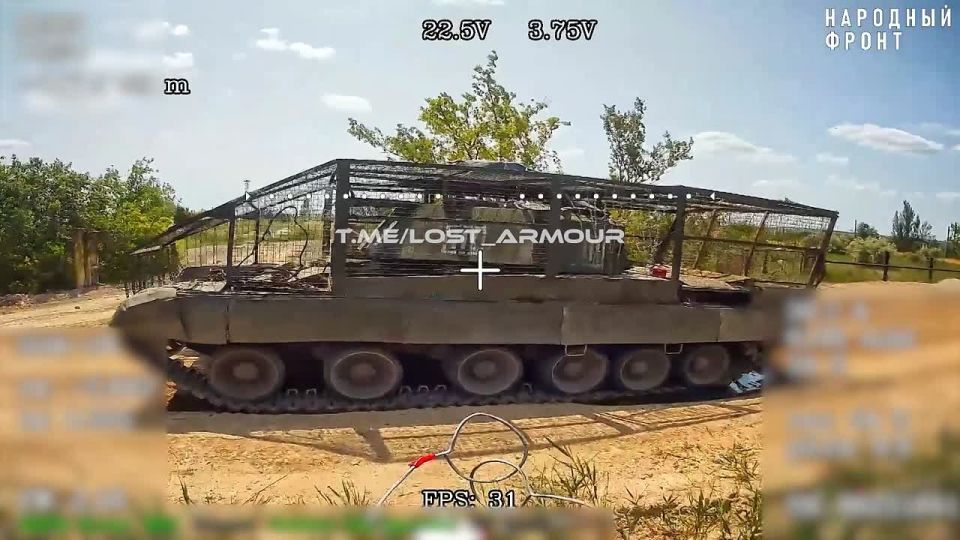 В Северске ударом оптоволоконного FPV-дрона "КВН" уничтожен эрзац-бронетранспортер ВСУ на шасси САУ 2С19 "Мста-С".