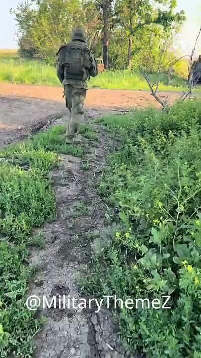 Русские штурмовики проходят мимо демилитаризованного хохляцкого бронеавтомобиля "Козак-7" на Южно-Донецком направлении.