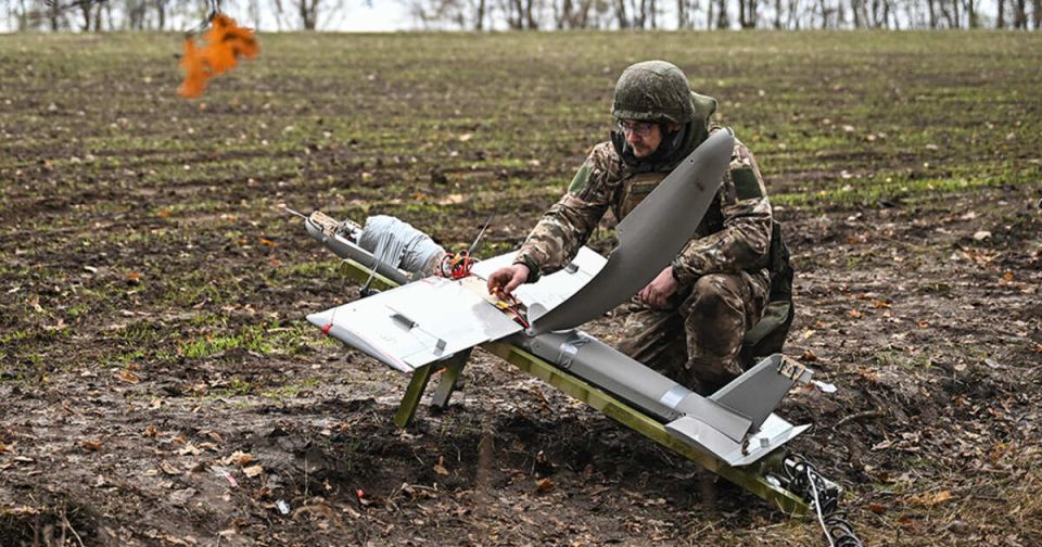 Расчет ударного беспилотника самолетного типа "Молния-2" соединения спецназа группировки войск "Центр" уничтожил расчет дронов боевиков ВСУ на красноармейском направлении в зоне проведения спецоперации РФ (СВО). Об этом заявили в российском Минобороны.