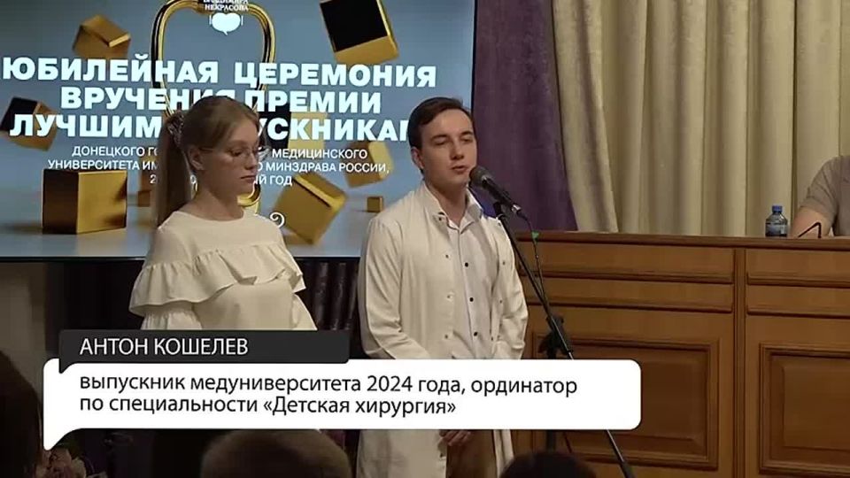 Глава ДНР Денис Пушилин вручил 12 денежных сертификатов от Благотворительного фонда им. Некрасова отличившимся студентам Донецкого государственного медицинского университета им. Горького. Среди номинантов выпускники, которые проявили себя в студенческие годы.