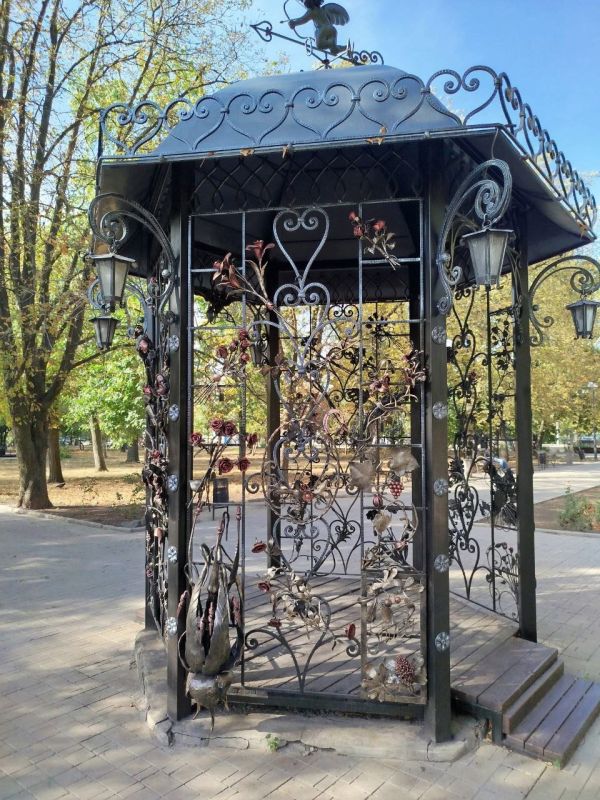 Здесь установлены «Беседка Влюбленных», скульптура «Соединяя сердца» и «Лавочки для Влюбленных». Все эти композиции давно полюбились молодоженами города. И теперь, благодаря нашим защитникам, влюбленные пары, жители и гости города могут спокойно посещать сам парк, не боясь обстрелов.