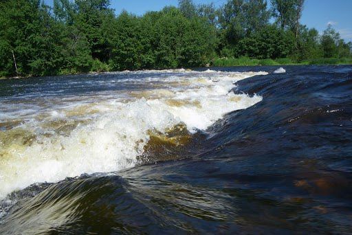 Пороги имеют свои названия: Бели, Эгла, лестничный, а самый опасный из них - "Большой Славянский" с водопадом высотой около 4 метров.