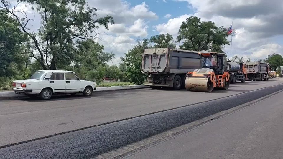 При поддержке Свердловской области продолжается ремонт дорог в селе Гранитное. Сейчас укладывают второй слой асфальта по центральной улице Самохина.