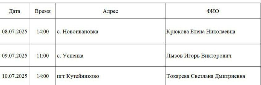 График проведения встреч с населением на подведомственных территориях руководящим составом администрации Амвросиевского муниципального округа и начальниками территориальных отделов администрации округа с 07 по 11 июля 2025 года
