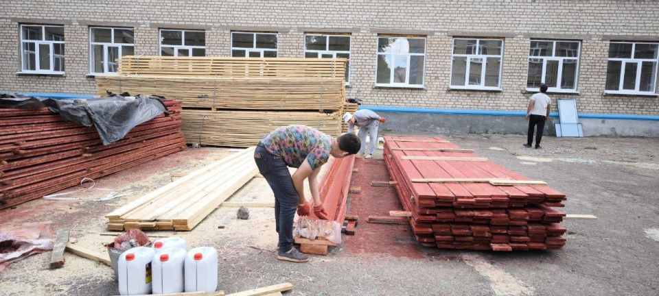 Строители Якутии восстанавливают школу в Еленовке Докучаевского округа