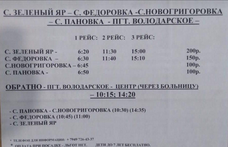 С 14 июля будут запущены автобусные маршруты с. Зеленый Яр - пгт Володарское" и пгт Володарское - с. Заря"