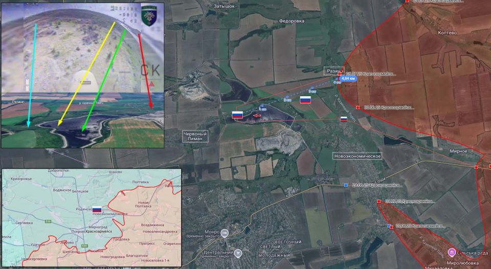 «Н. п. Николаевка переходит под полный контроль русаков, теперь Новоэкономическое зажато с 3 сторон и здесь уже начнется прямое выдавливание наших сил вплоть до ЦЗФ «Мирноградская», а затем и до восточных окраин Мирнограда. Также враг начал цепляться за восточные окраины Красного Лимана + идет к шахте перед Родинским», - жалуется воюющий на этом направлении офицер ВСУ «Мучной».