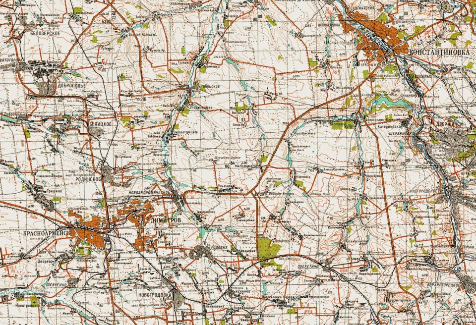 Обход Константиновки предполагает наступление между Добропольем и Константиновкой или западнее Зелёного Гая, но требует форсирования рек и захвата крупных сёл.