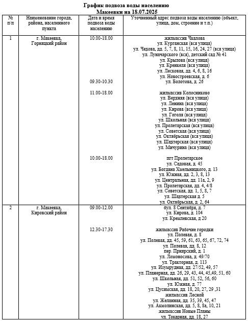 Завтра, 18 июля, в Макеевке будет организован подвоз воды для жителей, в дома которых из-за недостаточного количества подаваемой воды не поступила вода в установленный графиком день.
