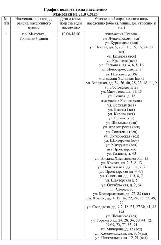 Завтра, 21 июля, в Макеевке будет организован подвоз воды для жителей, в дома которых из-за недостаточного количества подаваемой воды не поступила вода в установленный графиком день.