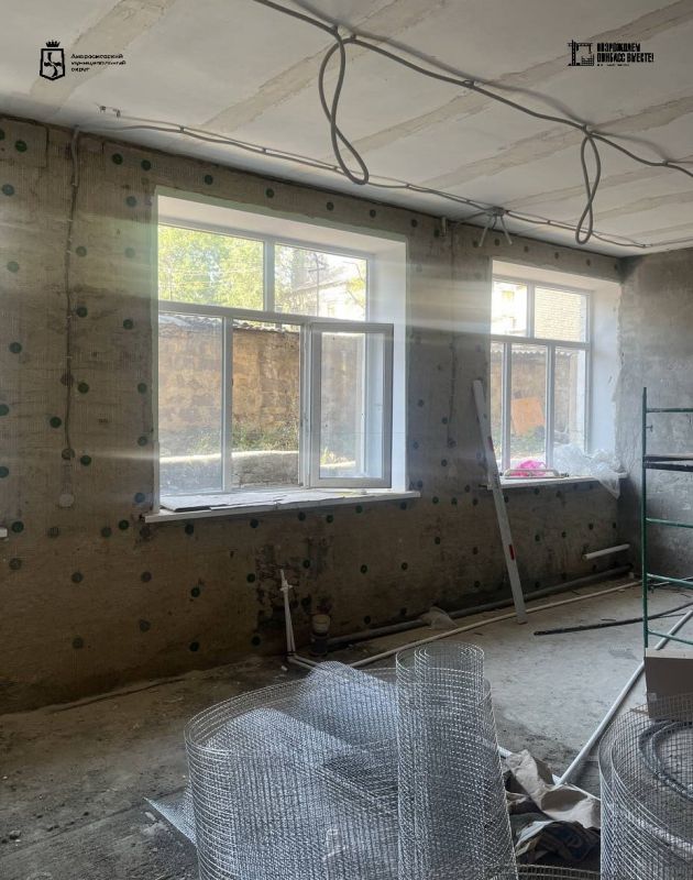 Силами региона-шефа Амурской области ведутся работы по выравниваю и оштукатуриванию стен. Также идет укладка новых труб системы водоснабжения и водоотведения.