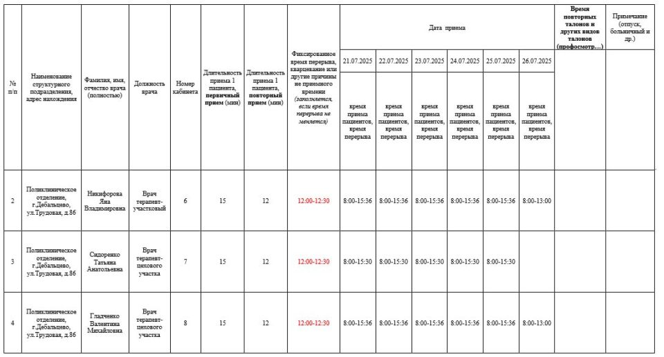 Сергей Желновач: Внимание. График приёма врачами ГБУ ДНР "ГБ г. Дебальцево"