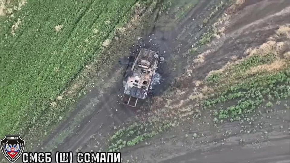 Подрыв на мине и последующее возгорание БМП-1ТС ВСУ в районе н.п Разино, ДНР.