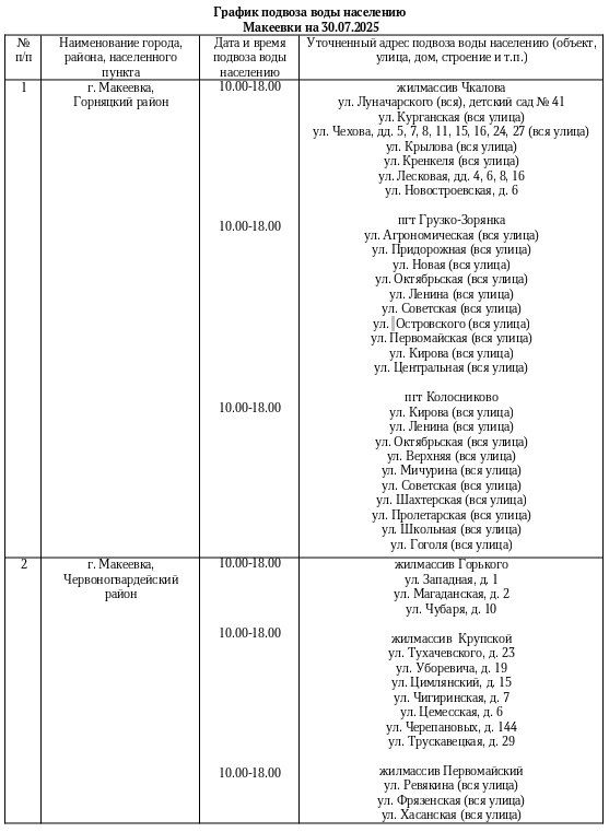Сегодня, 30 июля, в Макеевке будет организован подвоз воды для жителей, в дома которых из-за недостаточного количества подаваемой воды не поступила вода в установленный графиком день.