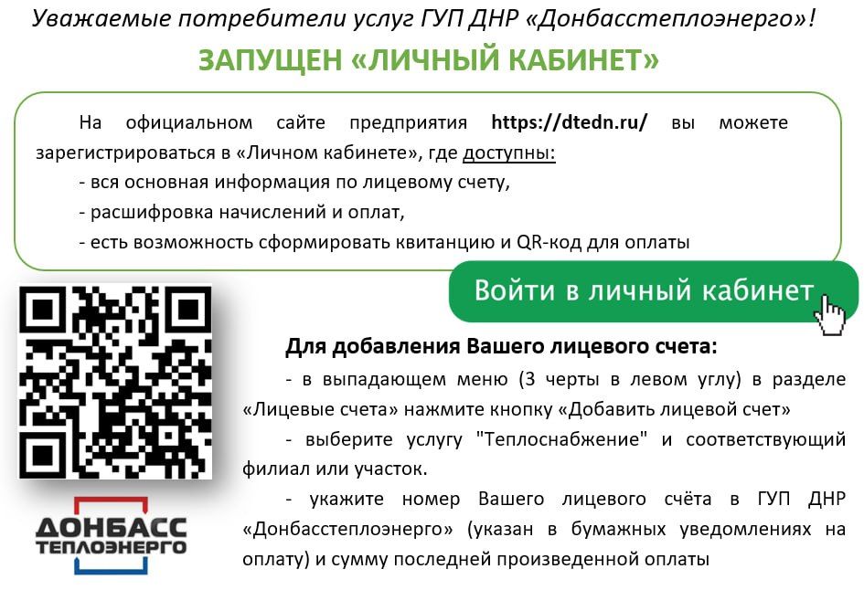 Уважаемые потребители услуг ГУП ДНР «Донбасстеплоэнерго»!