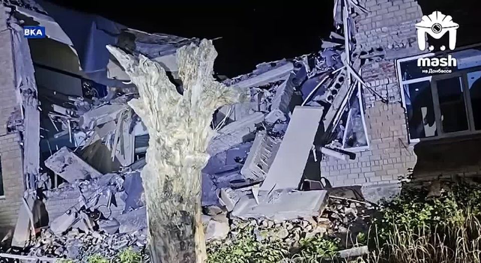 Крыша и стена упали в месте, где был актовый зал. Сообщают, что недавно здание ремонтировали.