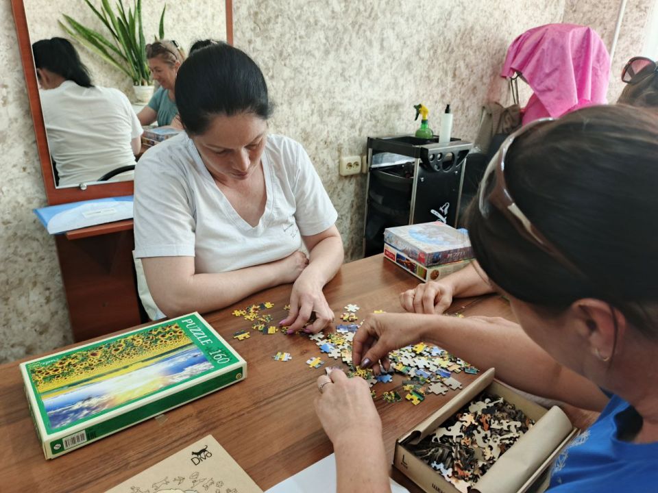 Сборка пазлов – это не только занимательное занятие, но и прекрасный способ тренировать мозг, развивать логику и внимание. Это занятие помогает нашим получателям социальных услуг оставаться активными и позитивными, развивает их моторику и умственные способности.