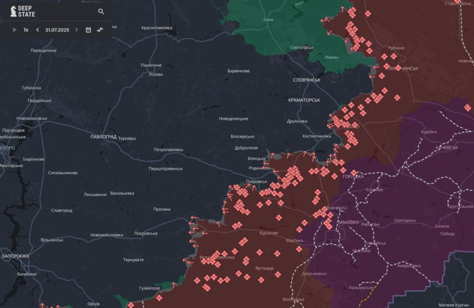 Украинский мониторинговый ресурс DeepState признает продвижение Армии РФ в Часовом Яре, Торецке, Зеленом Гае, вблизи Алексеевки и Андреевки-Клевцевого