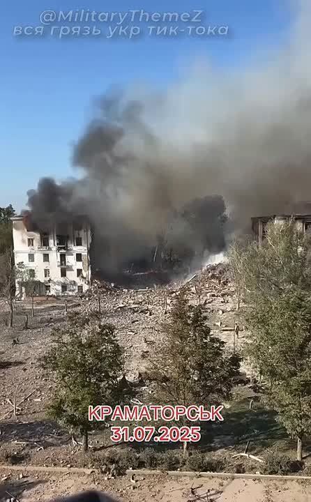 Последствия недавней детонации вражеского склада боеприпасов в центре Краматорска