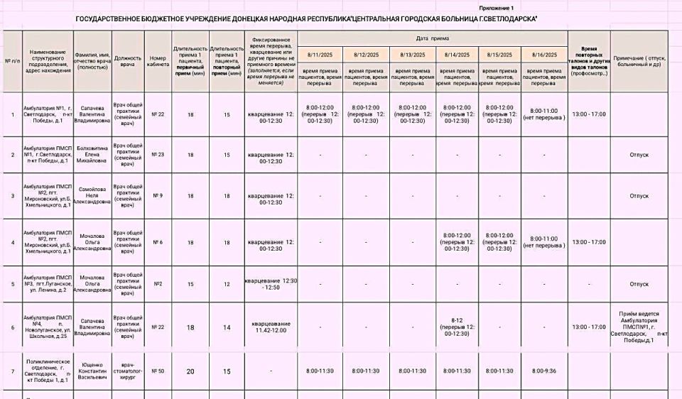 Г.рафик приёма врачами