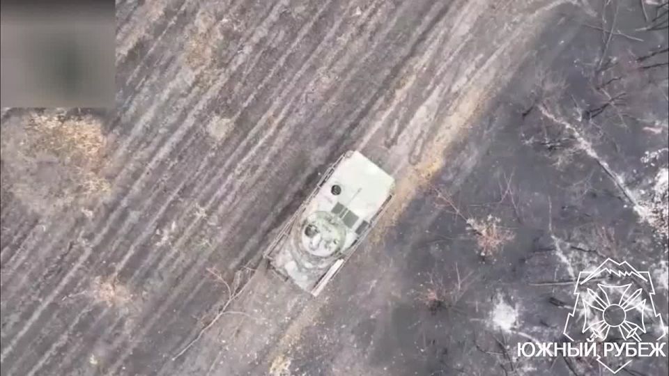 Кадры уничтожения БМП ВС Украины при помощи точного сброса с квадрокоптера бойцами группировки "Юг" в районе н.п. Северск