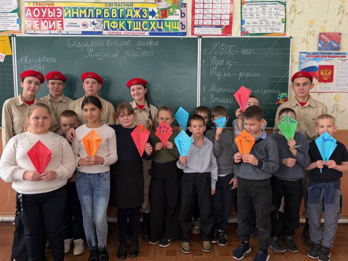 Юнармейцы отряда ВПК «Пламя» штаба местного отделения городского округа Харцызска СШ № 4, ученицы из 9-А класса Мокровуз Виктория, Иващенко Мария, Бесчаснов Давид, Воробьев Сергей, Закаличный Никита провели мастер-класс по открыткам для учеников 3-Б класса посвященный Дню Матери На мастер-классе ребята сделали открытки для своих любимых мам.