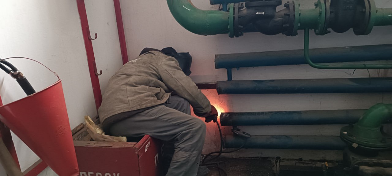 Электрогазосварщик Сергей Синица, проводит восстановление регистров, что является неотъемлемой частью поддержания оптимальной температуры в системе отопления.
