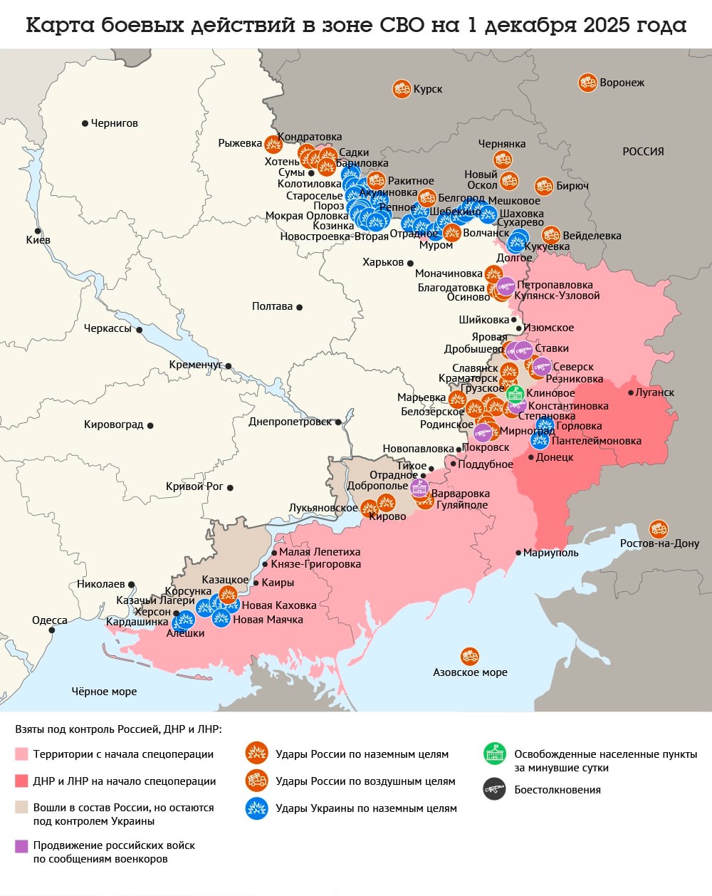 Карта боевых действий в зоне СВО на 1 декабря 2025 года