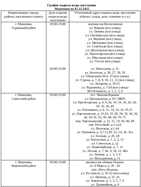 Завтра, 5 декабря, в Макеевке будет организован подвоз воды для жителей, в дома которых не поступила вода в установленный графиком день.