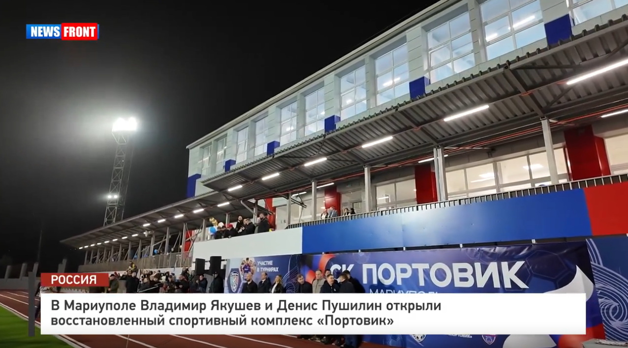 Секретарь Генсовета «Единой России» Владимир Якушев и глава ДНР Денис Пушилин открыли восстановленный спортивный комплекс «Портовик» в Мариуполе.