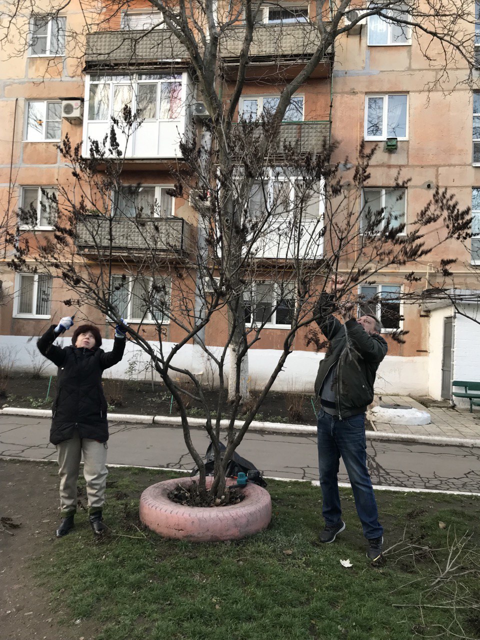 Жители провели кронирование кустовых деревьев и убрали мусор.