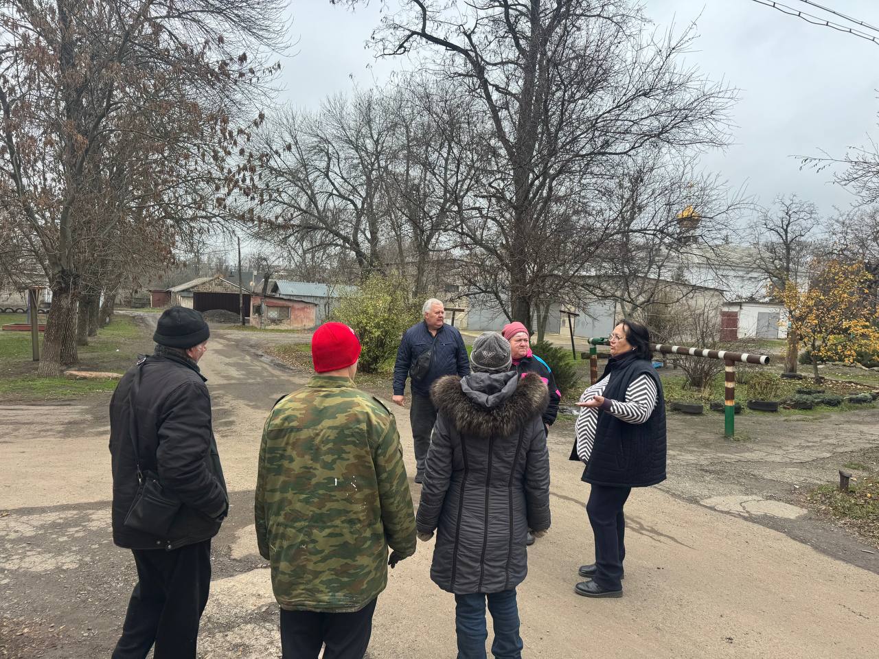 Людмила Морщ - начальник Комсомольского территориального управления Администрации Старобешевского муниципального округа провела сход граждан по улице Горького города Комсомольское.