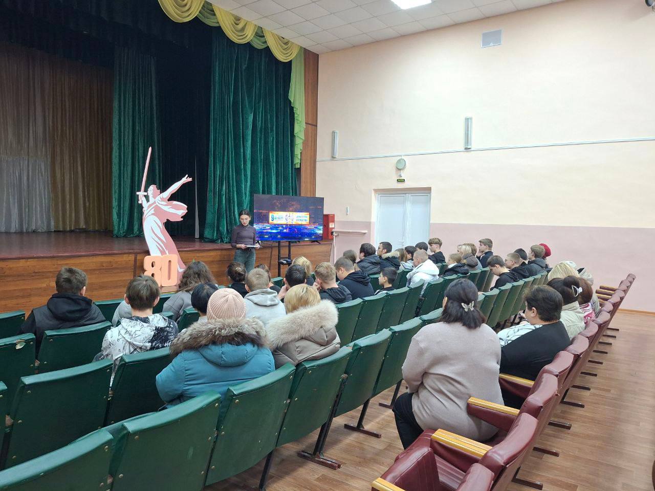 9 декабря 2025 года в Муниципальном бюджетном учреждении «ЦКД пгт. Криничная г.о. Макеевка» для учеников школы № 35 и военнослужащих состоялся кинолекторий "Они сражались за Родину". Ведущая рассказала об истории праздника и наградах, которыми чествуют героев. Затем был показан фильм "Молодая гвардия", вызвавший живой интерес у зрителей.