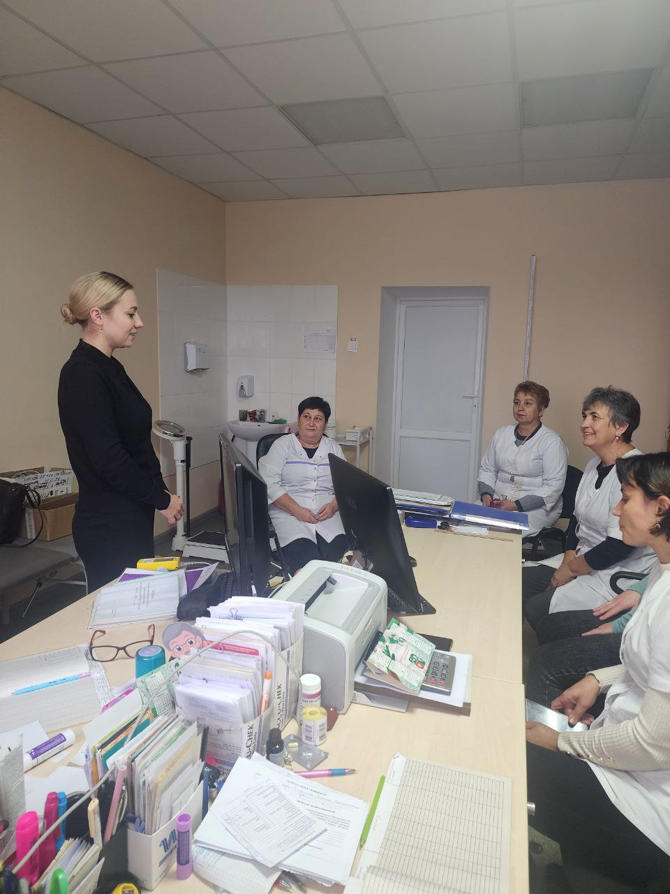 Сегодня депутат Тельмановского муниципального совета Юлия Линник провела встречу с трудовым коллективом Гранитненской амбулатории ОПСМ Тельмановского муниципального округа.