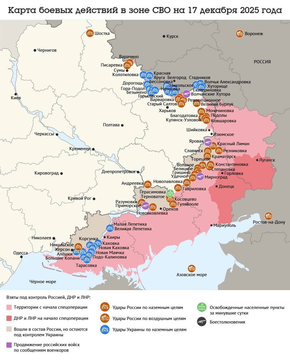Карта боевых действий в зоне СВО на 17 декабря 2025 года