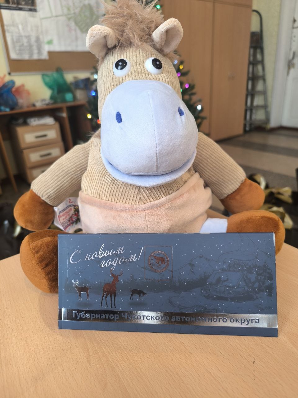 Представитель рабочей группы Владислав Луговой от имени Губернатора Чукотского автономного округа Владислава Кузнецова поздравил детей посёлка Новолуганское с Днём святого Николая и Новым Годом.