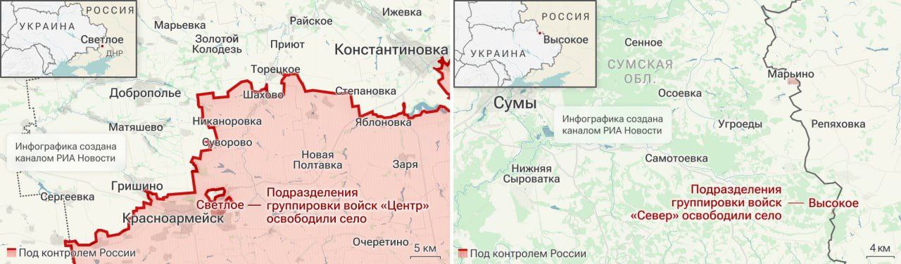 Армия России освободила населенные пункты Высокое в Сумской области и Светлое в ДНР, сообщило Минобороны.