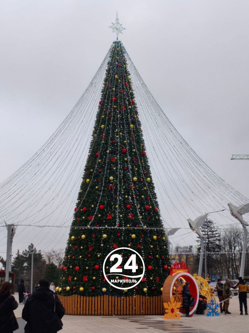 Площадь Ленина украшена гирляндами, световыми фигурами и яркими композициями.
