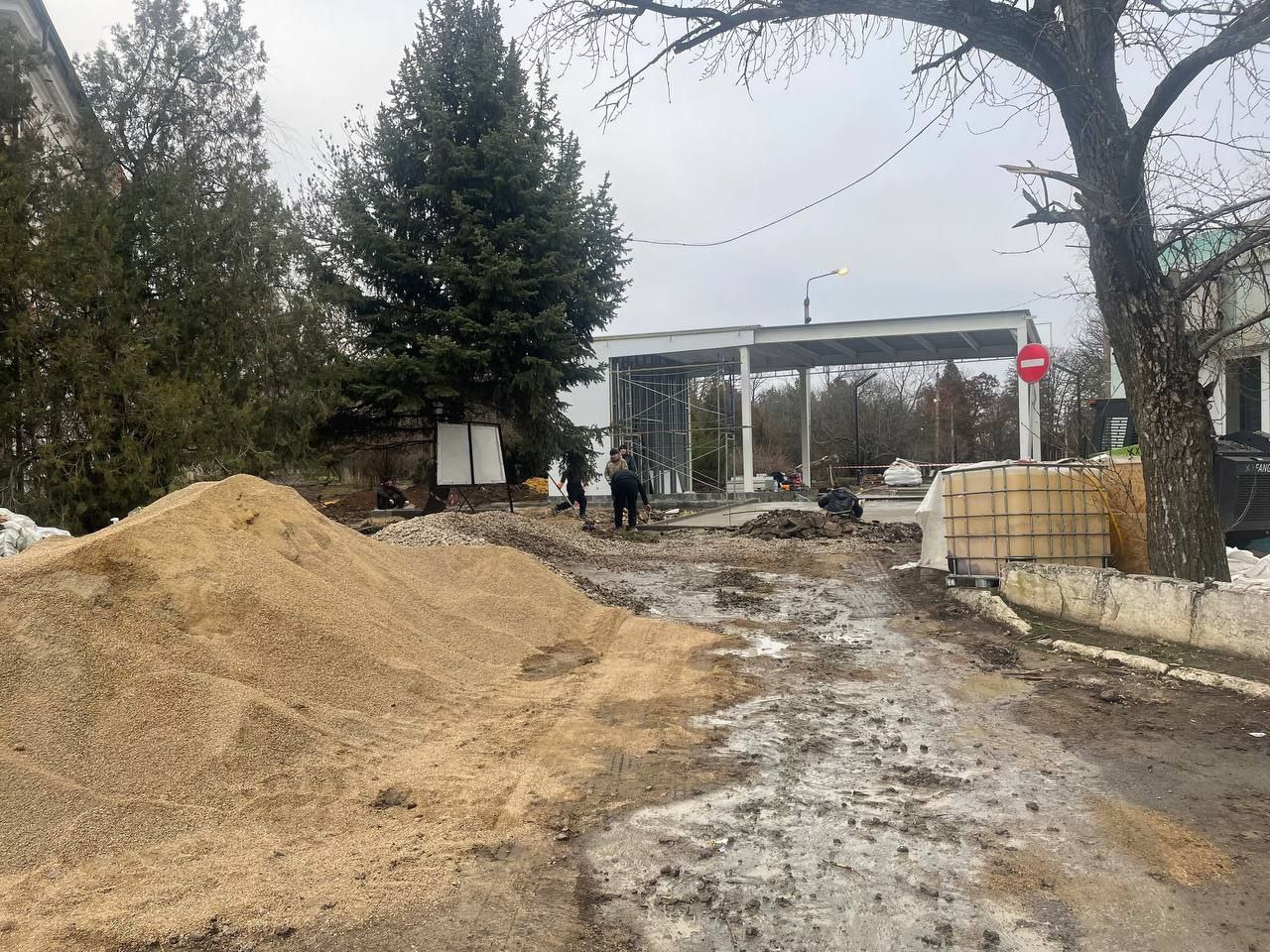 Уже проделана значительная работа: старое асфальтовое покрытие тротуаров демонтировано, проведена санитарная обрезка деревьев, удалены аварийные насаждения. Территория очищена от строительного мусора, лесопорубочных остатков и лишней поросли.