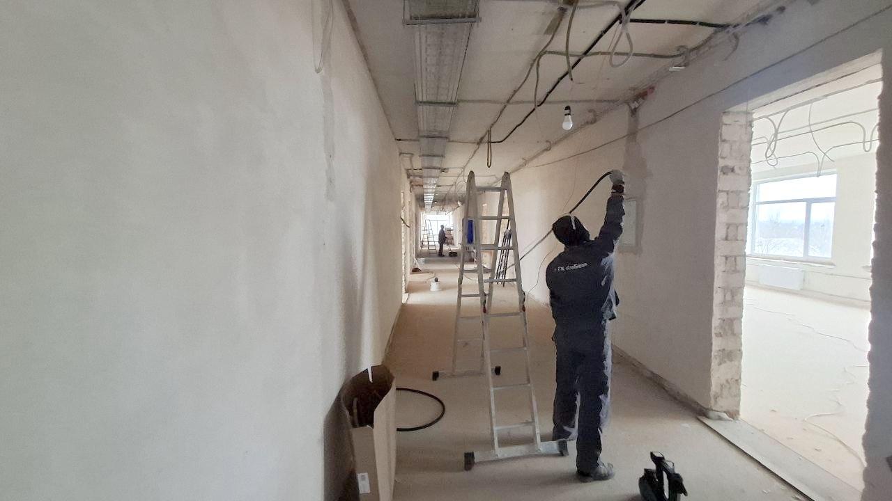 В селе Безыменное продолжается капитальный ремонт здания местной школы. На объекте 8 человек рабочих. Общая стройготовность очередного этапа по выполненным работам составляет 90%. На данный момент строители выполняют монтажные и отделочные работы.