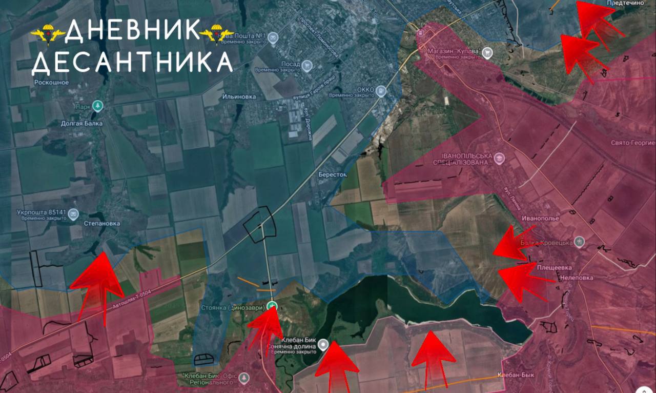 Таким образом, наши войска стремятся к выходу на трассу Т-0504, по которой противник осуществляет снабжение группировки в Константиновке и в балке у водохранилища;