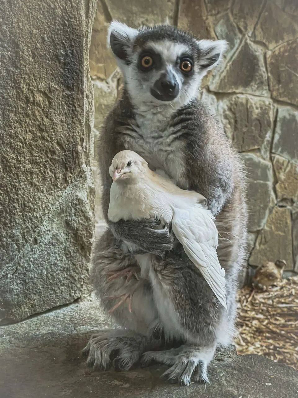 В ростовском зоопарке лемур согрел замерзшего голубя: перед Новым годом даже звери делятся друг с другом теплом
