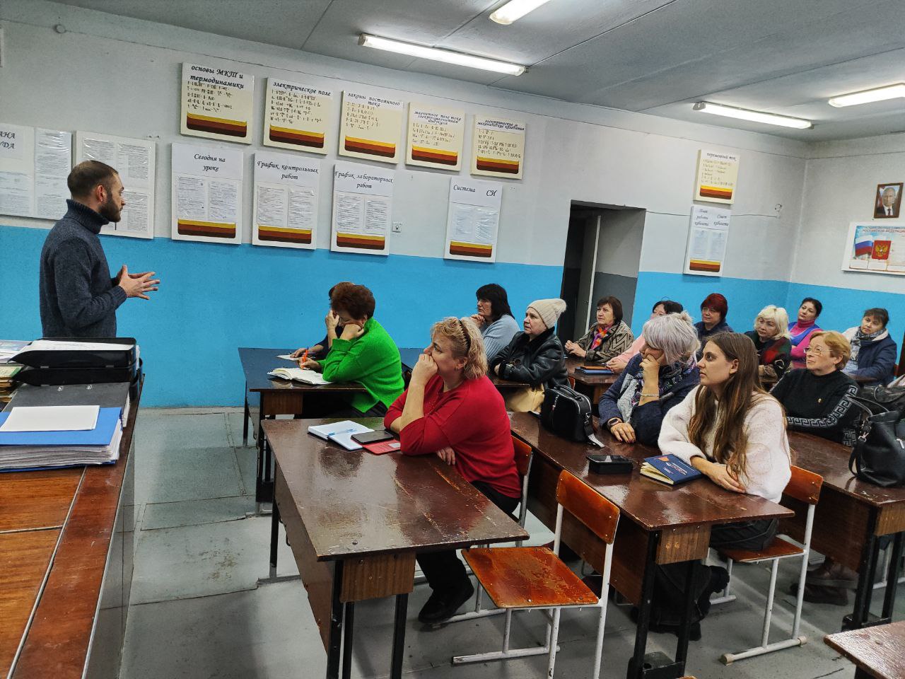 Сегодня, 23 декабря 2025 года, по поручению Главы Республики Дениса Пушилина, активист района Валентин Марков провел встречу с трудовым коллективом ГБПОУ "Донецкий Техникум Сферы Услуг" по адресу: ул. Текстильщиков, 6.