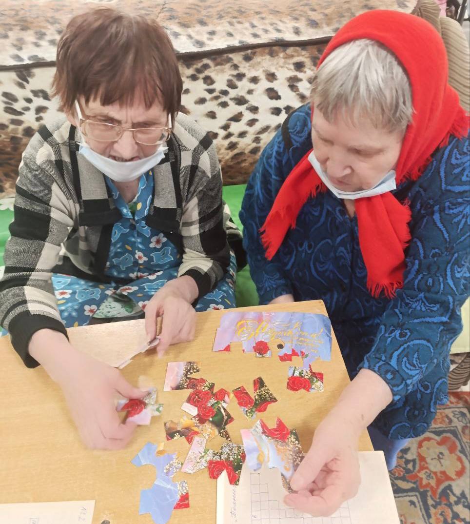 В первой половине дня была организована оздоровительная физкультура, способствующая поддержанию физической активности. Затем подопечные с увлечением разгадывали ребусы и кроссворды, тренируя умственные способности. Также были предложены пазлы для развития мелкой моторики и концентрации внимания. Завершилась утренняя часть дня музыкальной игрой, которая вызвала положительные эмоции и помогла вспомнить любимые композиции.