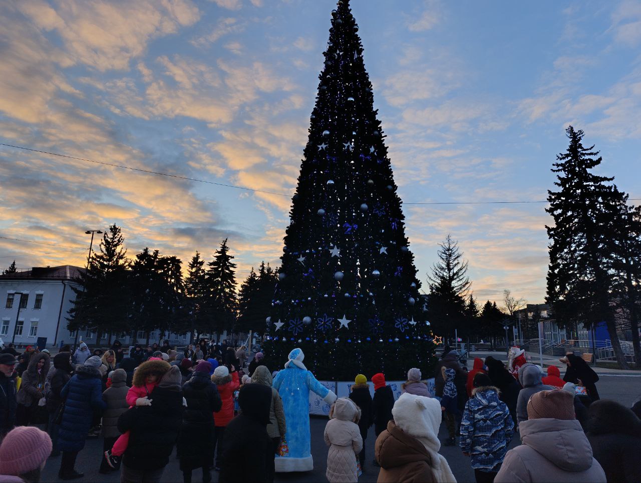 После этого все участники мероприятия вышли на площадь, где состоялось торжественное зажжение праздничных огней на главной городской ёлке.