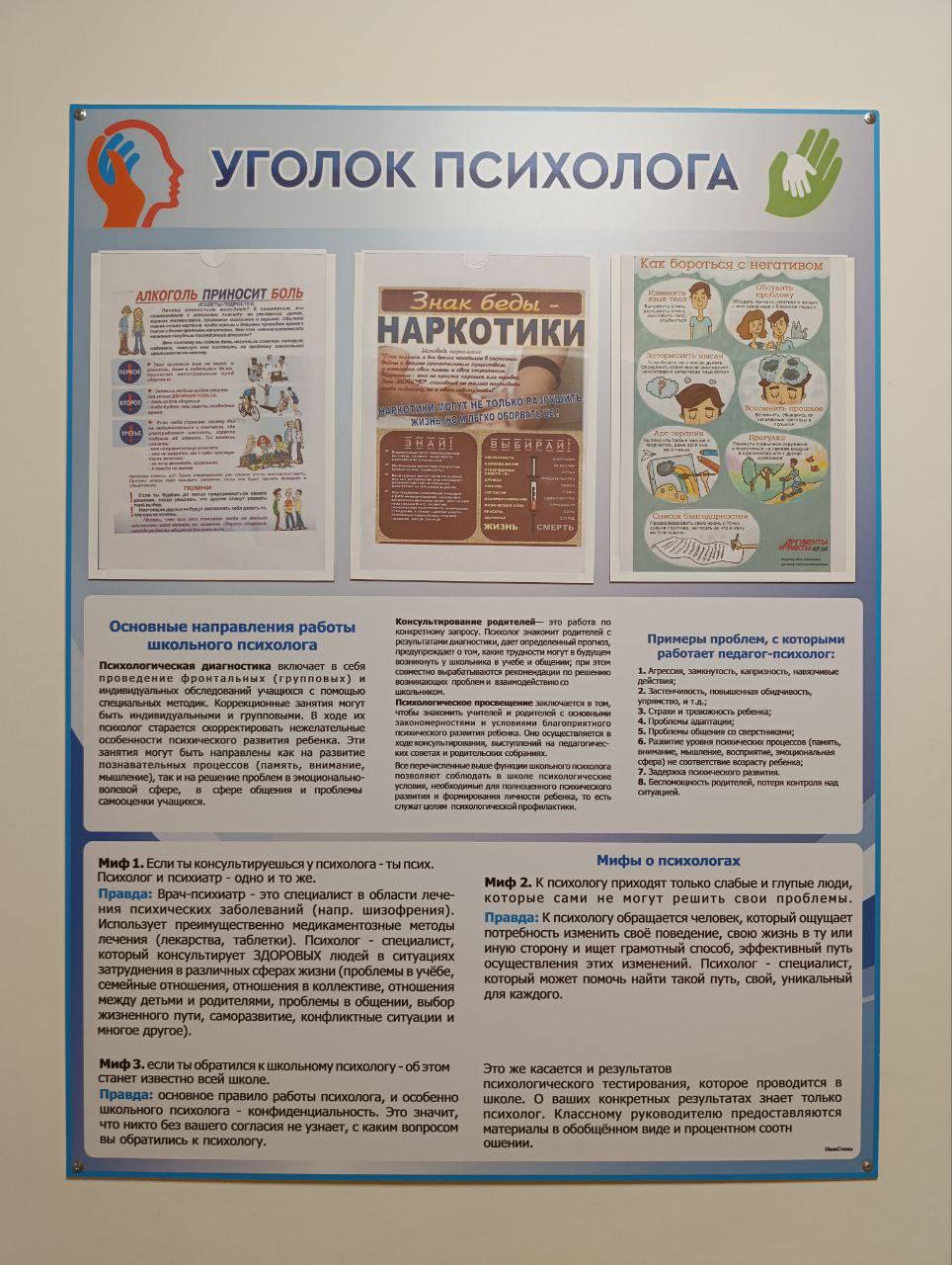Обучающиеся 5-11 классов на классных часах прослушали лекции и посмотрели социальные видео ролики о вреде курения вейпа, употребления наркотических и психотропных веществ, алкогольных и слабоалкогольных напитков. В группах продленного дня (1-4 классы) был организован показ мультфильма «Здоровье начинается дома». На стендах педагогом-психологом размещена информация по данной теме.