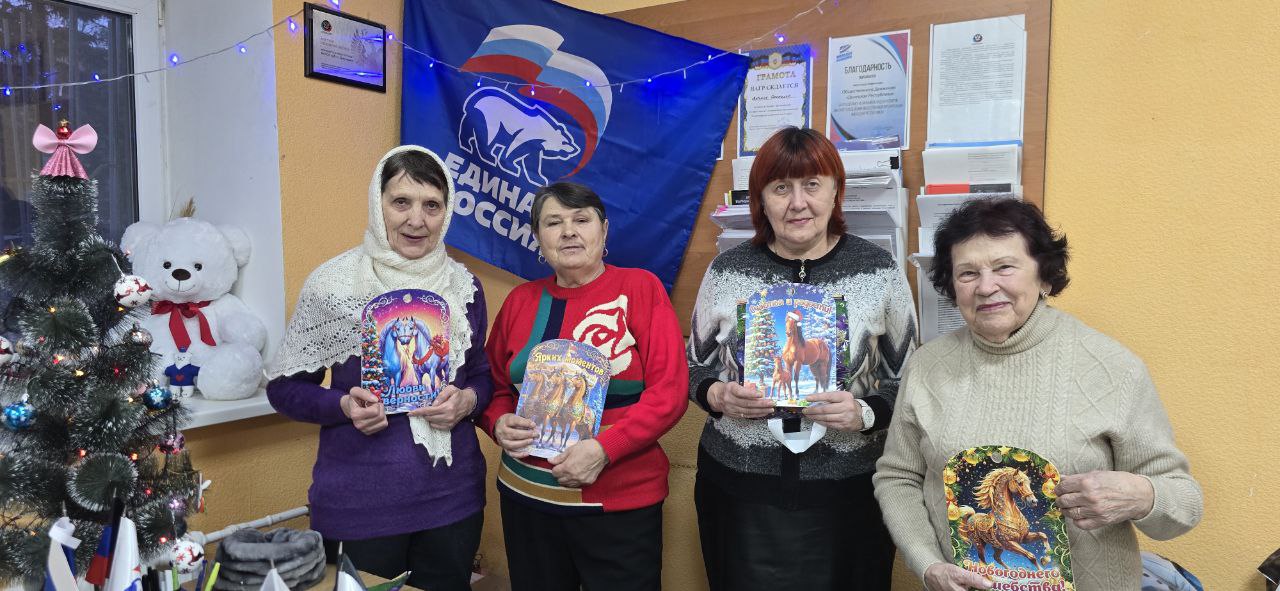 Руководитель партийного проекта " Старшее поколения" поздравила всех с наступающим Новым годом и вручила небольшие подарки.