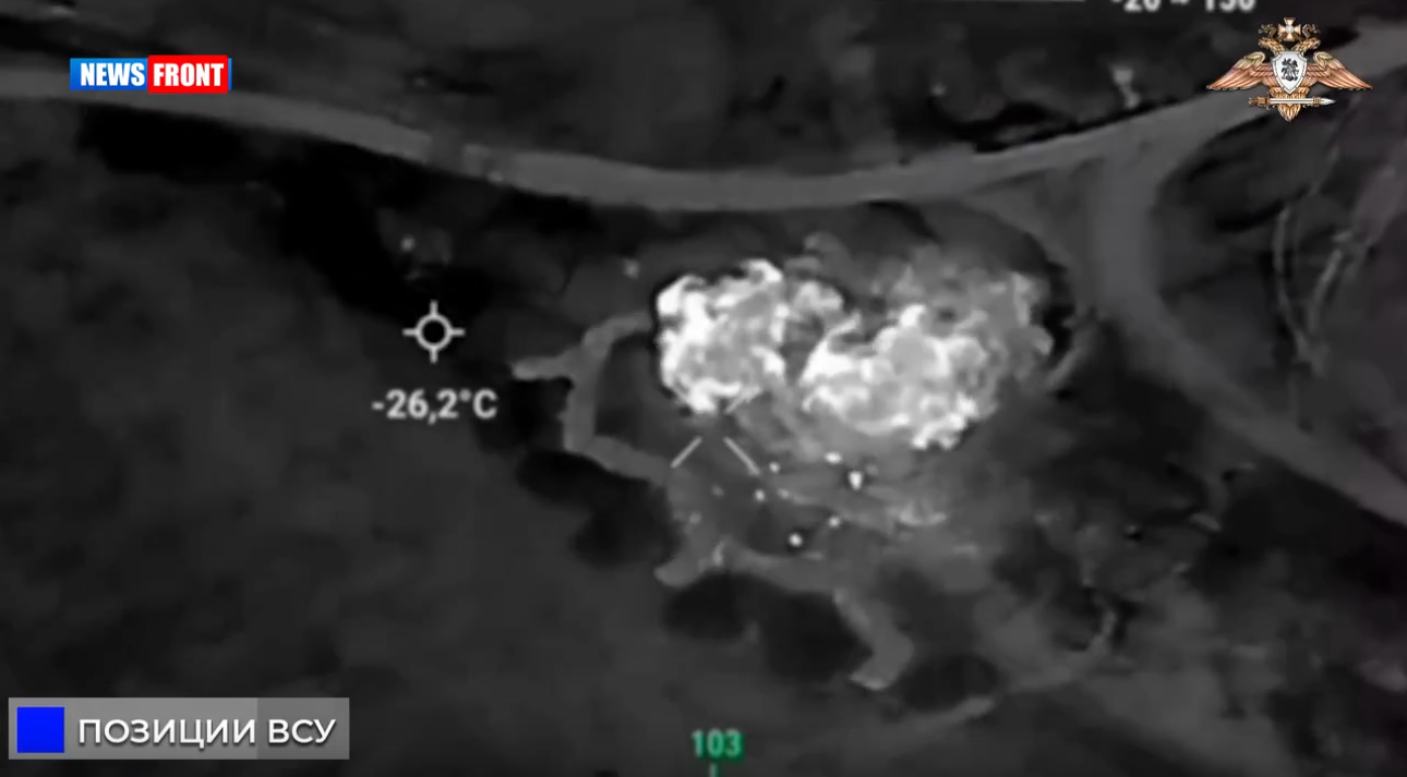 Пресс-служба Народной милиции ДНР опубликовала кадры удара по точке взлета БЛА и позиции ВСУ в Николайполье.